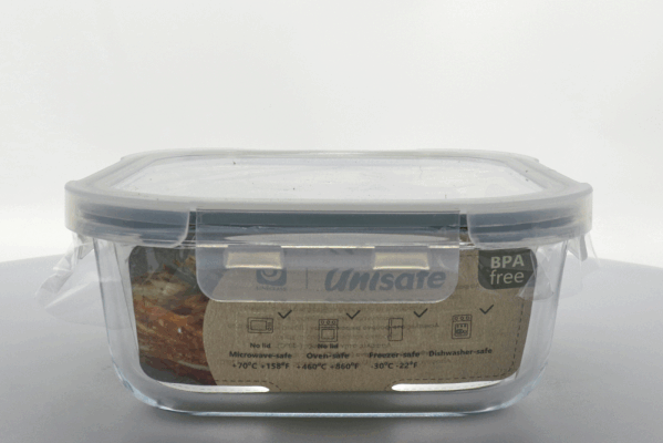 UNISAFE ΦΑΓΗΤΟΔΟΧΕΙΟ ΤΕΤΡΑΓΩΝΟ ΓΥΑΛΙΝΟ ΜΕ ΚΑΠΑΚΙ 800ml - (58401G)