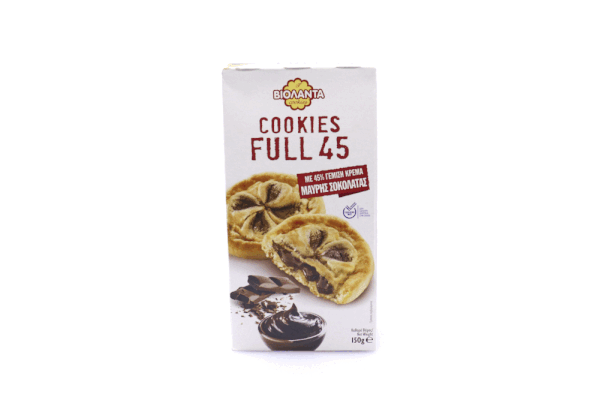 Απολαυστικό μπισκότο βανίλιας, με γέμιση κρέμα μαύρης σοκολάτας και χρώματος χρυσο καφέ με σκούρες επιφάνειες κακάο.