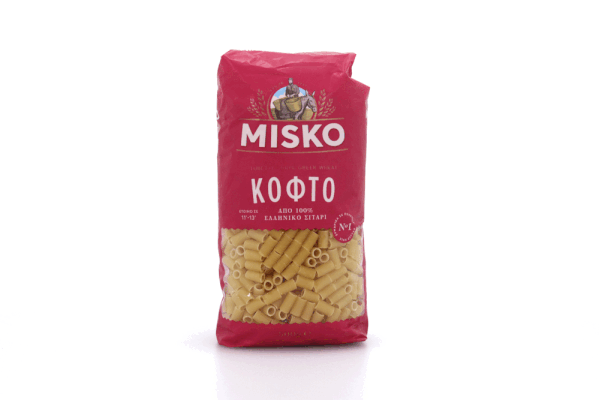 Από τα πιο αγαπημένα σχήματα κοντών ζυμαρικών, τα μακαρόνια Misko κοφτό διακρίνονται από την τρύπα στο εσωτερικό τους και την πρώτη θέση στις προτιμήσεις σας! Το σχήμα του μοιάζει με χάντρα κομπολογιού και είναι μεγαλύτερο σε μήκος από το κοφτό μισό. Είνα Δεν υπάρχουν συστατικά Δεν υπάρχουν πληροφορίες αλλεργιογόνων Δεν υπάρχουν οδηγίες